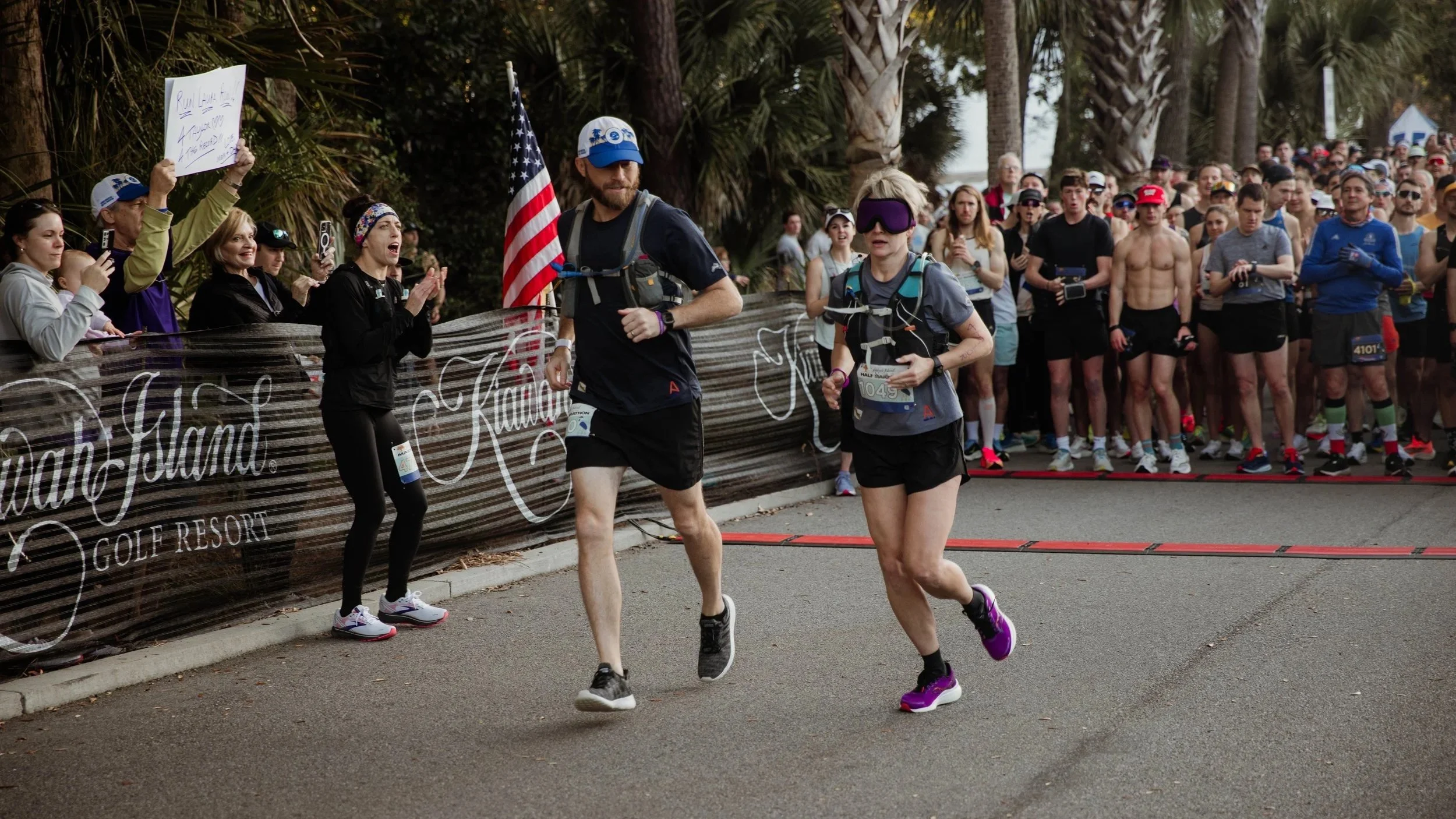 On December 9, 2023, Laura King Edwards stepped up to the starting line of South Carolina’s Kiawah Island Half Marathon with her guide, Andrew Swistak. Race morning nerves weren’t new to her. She’s faced down plenty of starting lines. But this one carried a different weight. She was about to attempt something not only difficult but extremely dangerous: setting the world record for the fastest blindfolded half marathon by a female, without a tether, on a live course with thousands of runners, all while relying on a surgically reconstructed and synthetically supported left ankle.